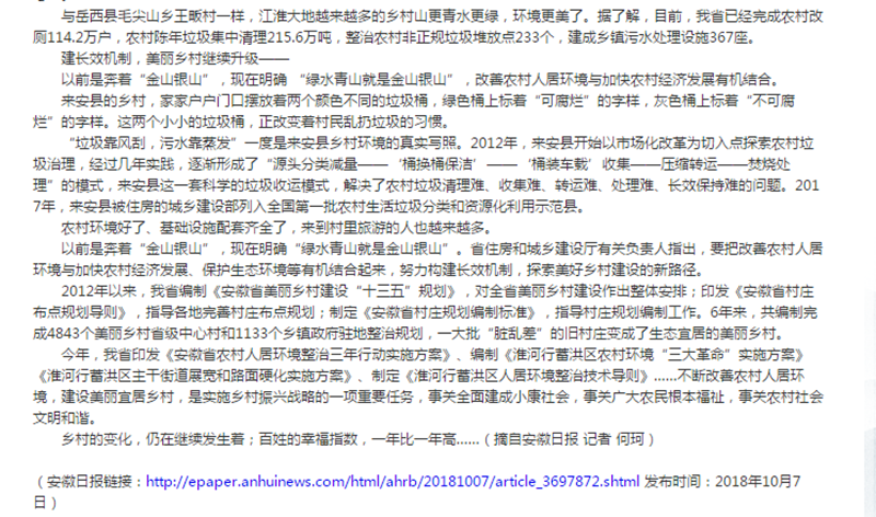 安徽日?qǐng)?bào):美好鄉(xiāng)村建設(shè),幸福指數(shù)噌噌漲