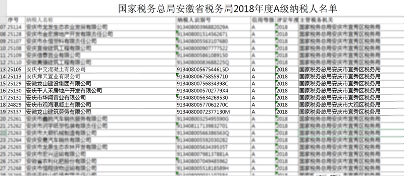 近日,安徽省國家稅務(wù)局發(fā)布A級納稅信用單位名單,集團(tuán)公司下屬安徽龍山建設(shè)集團(tuán)有限公司、 安慶市華翔置業(yè)有限公司、安慶千人禾房地產(chǎn)開發(fā)有限公司、安慶中交混凝土有限公司、安慶舜天置業(yè)有限公司、安慶市觀海混凝土有限公司和安徽龍山建筑勞務(wù)有限公司等單位同時榮獲省級“2018年度A級納稅信用單位”榮譽(yù)稱號。