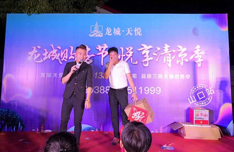 夜幕降臨,華燈初上。為讓更多居民全面了解龍城天悅項目情況,7月6日晚,集團公司總經(jīng)理陳思建攜相關(guān)領(lǐng)導(dǎo)、部分職能科室人員帶隊下鄉(xiāng)“送清涼”,首場盛夏納涼晚會在大觀區(qū)山口鄉(xiāng)相約而至?,F(xiàn)場人山人海、熱鬧非凡,音樂聲、喝彩聲此起彼伏,大家一邊欣賞著精彩表演、一邊抽著大獎……這個盛夏,是納涼開啟最好的方式。