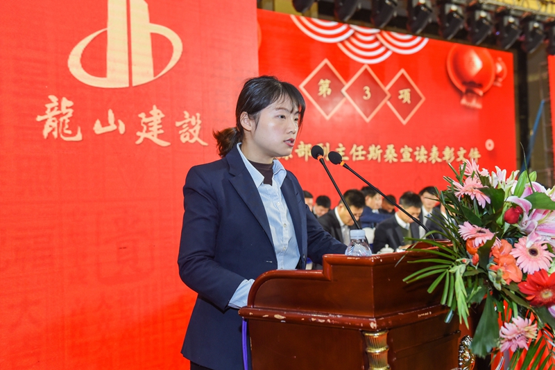 大會在莊嚴嘹亮的國歌聲中拉開帷幕。會上,集團公司副董事長朱遠飛就2019年生產(chǎn)經(jīng)營情況和2020年工作計劃向大會作報告,他指出,過去的2019年是不平凡的一年,成功和汗水都已經(jīng)成為歷史;即將到來的2020年,希望全體龍山人持之以恒抓好《董事長關(guān)于項目管理八大要點解讀》的貫徹落實,以2019年度的工程成績?yōu)樾碌钠瘘c,進一步鞏固和夯實發(fā)展基礎(chǔ),搶抓黨中央提出的一系列利好的政策機遇,謀求集團公司新的發(fā)展。