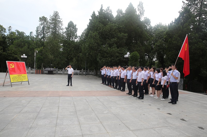 步履鏗鏘,砥礪前行。紅軍廣場(chǎng)上,全體黨員同志認(rèn)真聆聽(tīng)講解,拾級(jí)而上,仰望革命烈士紀(jì)念塔,追尋紅色足跡,緬懷革命先烈。烈士紀(jì)念塔上,劉伯承元帥親筆手書(shū)的“燎原星火”肅然醒目,仿佛看見(jiàn)了往日的“星星之火”呈現(xiàn)的燎原之勢(shì)。墓碑上的紅星,仿佛用無(wú)聲的語(yǔ)言述說(shuō)著無(wú)數(shù)先烈們的初心和使命。全體人員向革命烈士默哀鞠躬。面對(duì)鮮紅的黨旗,在黨總支書(shū)記汪小苗的帶領(lǐng)下總支全體黨員高舉右拳,重溫入黨誓詞。