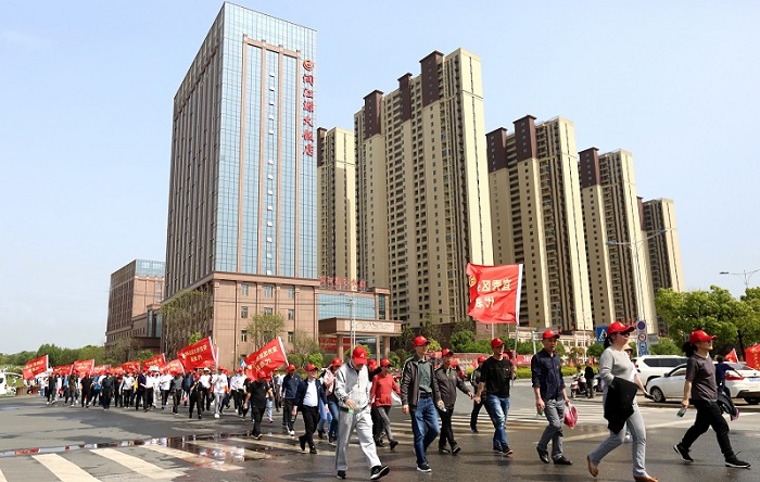 為了慶祝中國(guó)共產(chǎn)黨百年華誕,進(jìn)一步倡導(dǎo)“綠色、低碳、環(huán)?!笨茖W(xué)健康的生活理念,4月30日下午,安慶市宜秀區(qū)總工會(huì)、中共宜秀區(qū)直工委聯(lián)合主辦 “同心向黨,愛(ài)我北城”為主題的安慶市宜秀區(qū)“龍城天悅杯”健步行活動(dòng),中安龍山建設(shè)集團(tuán)承辦了此次活動(dòng)。區(qū)人大副主任、工會(huì)主席王瓊、副區(qū)長(zhǎng)王曉峰、區(qū)政協(xié)副主席唐克志出席開(kāi)幕儀式,區(qū)人大副主任、工會(huì)主席王瓊致開(kāi)幕辭。受集團(tuán)公司董事長(zhǎng)委托,總經(jīng)理陳思建代表集團(tuán)致歡迎辭,副區(qū)長(zhǎng)王曉峰宣布健步行活動(dòng)正式開(kāi)始。宜秀區(qū)政府52個(gè)機(jī)關(guān)單位近千名干部職工參加了此次活動(dòng)。