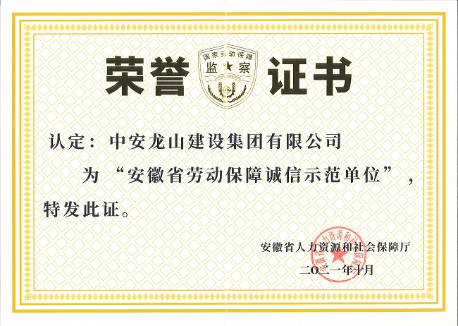 集團公司再次榮獲“安徽省勞動保障誠信示范單位”稱號