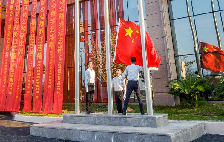 華廳集瑞,旭日臨門。11月12日,集團公司迎來了又一發(fā)展新里程,經(jīng)廣大員工的共同努力,集團公司辦公樓順利喬遷新址并舉行了隆重的喬遷儀式。早上七時三十分,在清晨一縷縷金色陽光的照耀下,在雄壯嘹亮的國歌聲中,莊嚴的五星紅旗在中安龍山建設集團辦公樓前冉冉升起。集團公司董事長汪小苗攜高層管理人員、各單位、項目負責人出席了集團公司辦公樓喬遷儀式,共同見證這一激動人心的歷史性時刻。