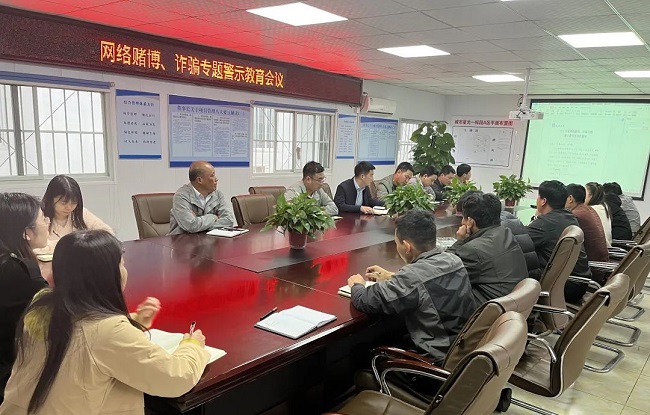 集團(tuán)下屬各單位、項(xiàng)目部嚴(yán)格按照活動(dòng)要求,結(jié)合工作實(shí)際,分批次組織全體員工學(xué)習(xí)網(wǎng)絡(luò)賭博、詐騙相關(guān)案例、觀看“抵制網(wǎng)賭、網(wǎng)詐”系列警示教育片,了解網(wǎng)賭、網(wǎng)詐的特點(diǎn)、種類(lèi)和危害,并通過(guò)正面引導(dǎo)和反面警示相結(jié)合的方式,警示大家以案為鑒、警鐘長(zhǎng)鳴;與此同時(shí),各單位、項(xiàng)目部扎實(shí)開(kāi)展員工參與網(wǎng)賭情況的摸底調(diào)查,密切關(guān)注員工的心理狀態(tài)和安全情況,及時(shí)堵塞隱患和漏洞。