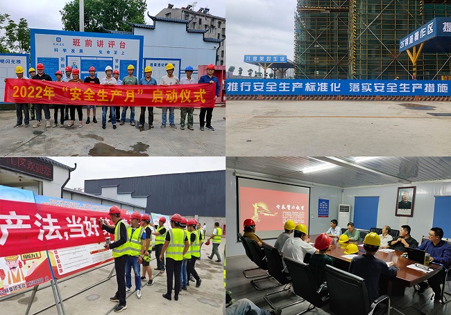 今年6月是全國第21個 “安全生產(chǎn)月”,為進一步增強安全生產(chǎn)意識,營造安全生產(chǎn)氛圍,集團公司各在建項目陸續(xù)開展了以“遵守安全生產(chǎn)法,當好第一責任人”為主題的安全生產(chǎn)月活動,并成立了以集團副董事長朱遠飛為組長、副總經(jīng)理朱順、江龍軍為副組長、各職能部室及項目部為成員的活動領導小組,以活動促安全,以安全促生產(chǎn)。