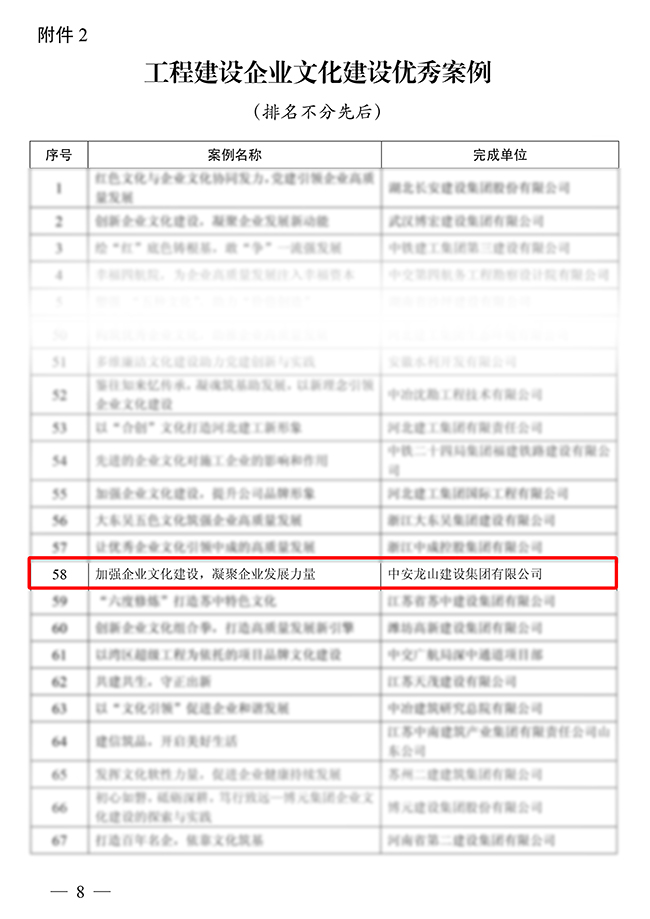 集團(tuán)公司企業(yè)文化建設(shè)案例榮獲中施企協(xié)“優(yōu)秀案例”稱號(hào)